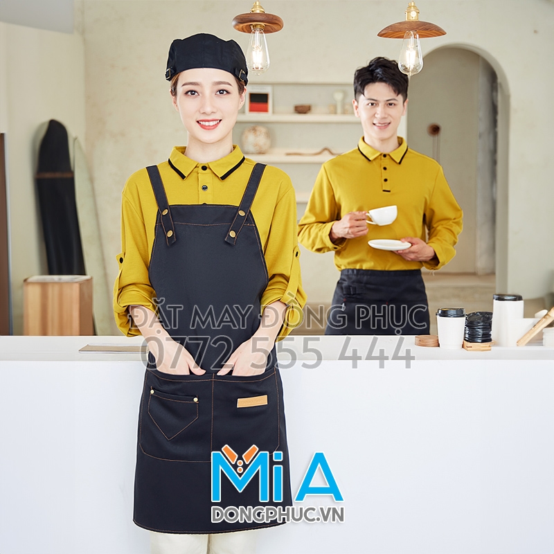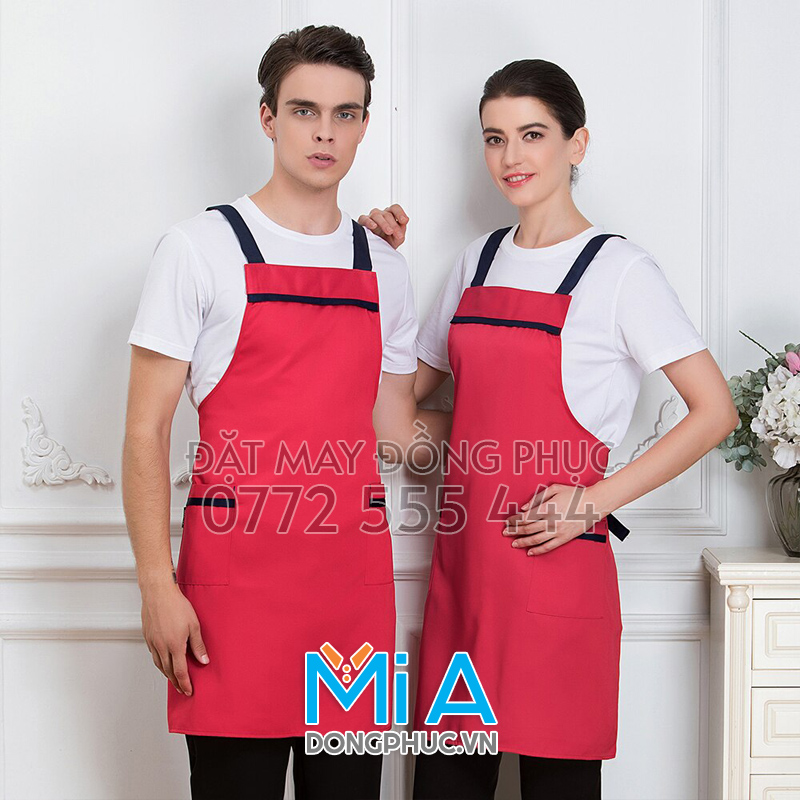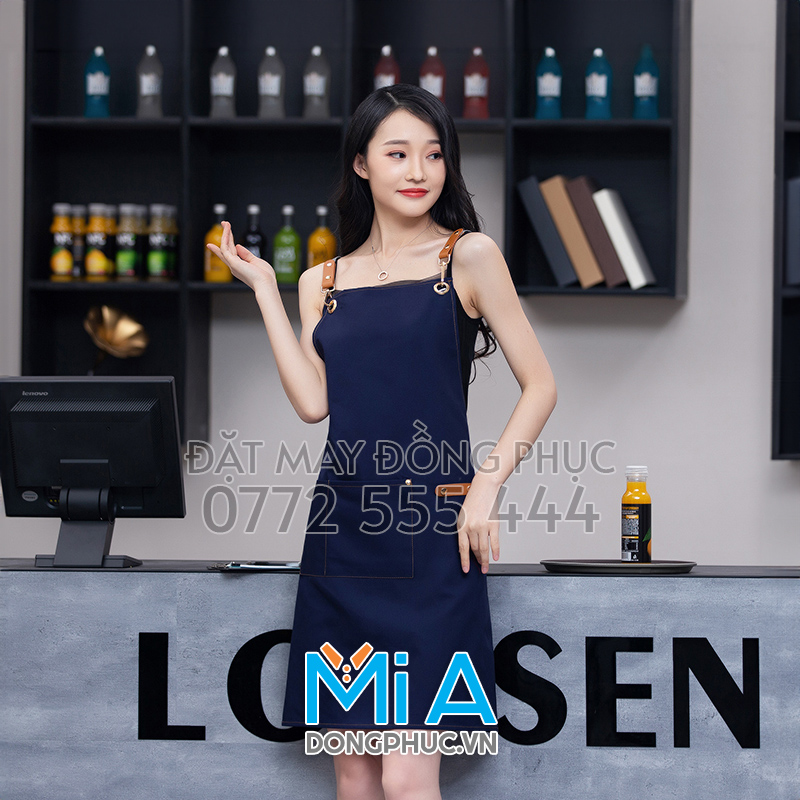 Nhiều mẫu tạp dề dài đeo vai dành cho bạn tham khảo để lựa chọn được đồng phục tạp dề phù hợp với mô hình kinh doanh của bạn. Công ty May Đồng Phục Mi A nhận may tất cả các loại tạp dề dài đeo vai theo yêu cầu. Chất liệu vải phong phú, mực in bền bỉ giặt không phai, chỉ thêu vi tính đầy đặn sẽ làm bạn hài lòng khi đặt may đồng phục tại dongphuc.vn